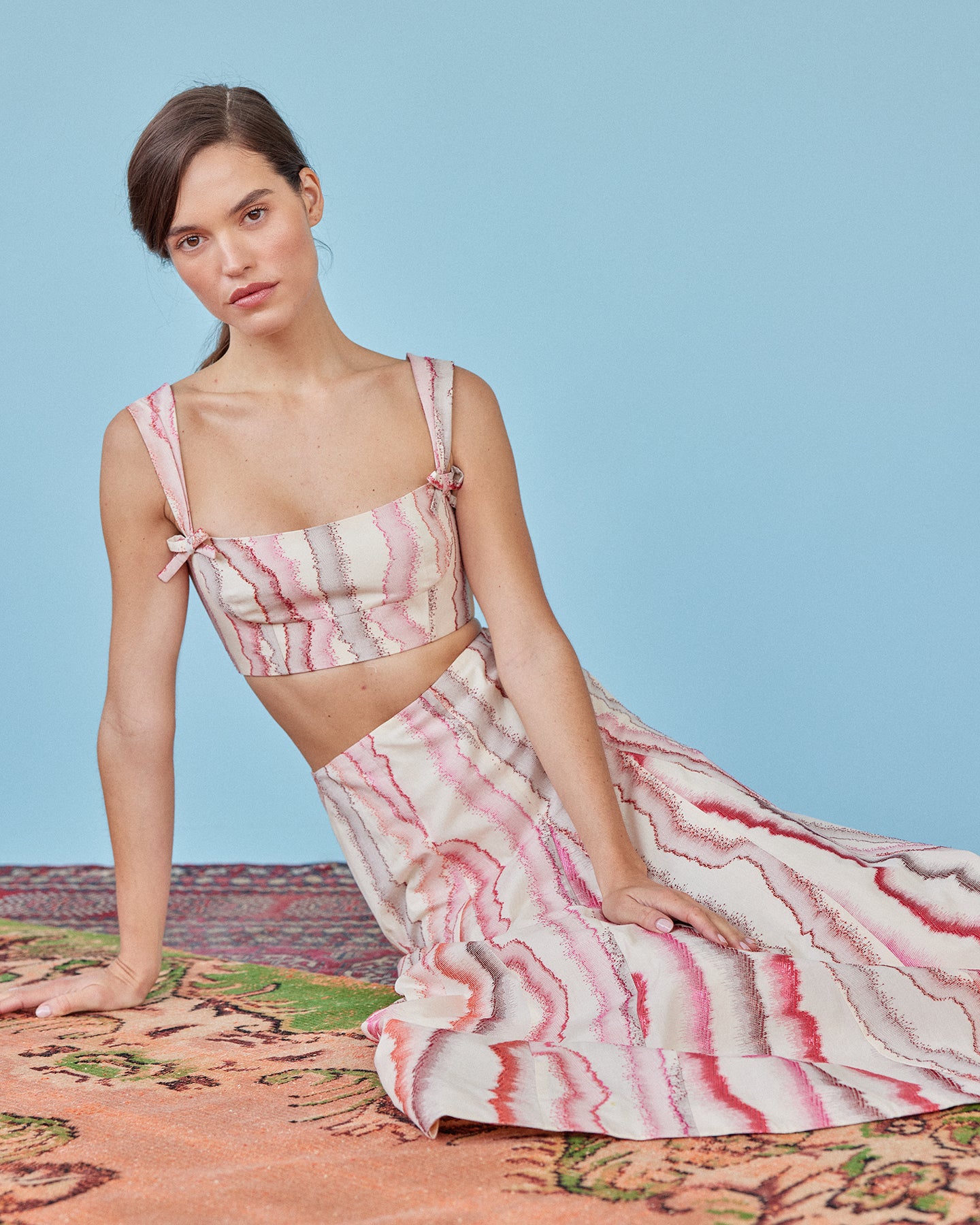 Inspired by the lush, maximalist retreat in Jaipur that is Villa Palladio, Spring/Summer 24 is a celebration of Jaipur's beauty, leisurely afternoons, and the carefree spirit of outdoor gatherings. With a blend of charming prints, luxurious fabrications, and versatile silhouettes, each piece is designed to evoke the essence of a perfect picnic day, whether it be a casual gathering or formal affair. Explore this season’s whimsical embroideries, playful color blocked frocks, and demi-couture ballgowns, that make up “Picnic in Jaipur.” Alexandra Pijut